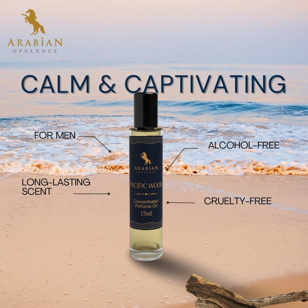 Arabian Opulence – FR126 Pacific Wood Perfume Oil Roll-On 15 ml | For Men | Alcohol-Free Attar | Woody & Long-Lasting